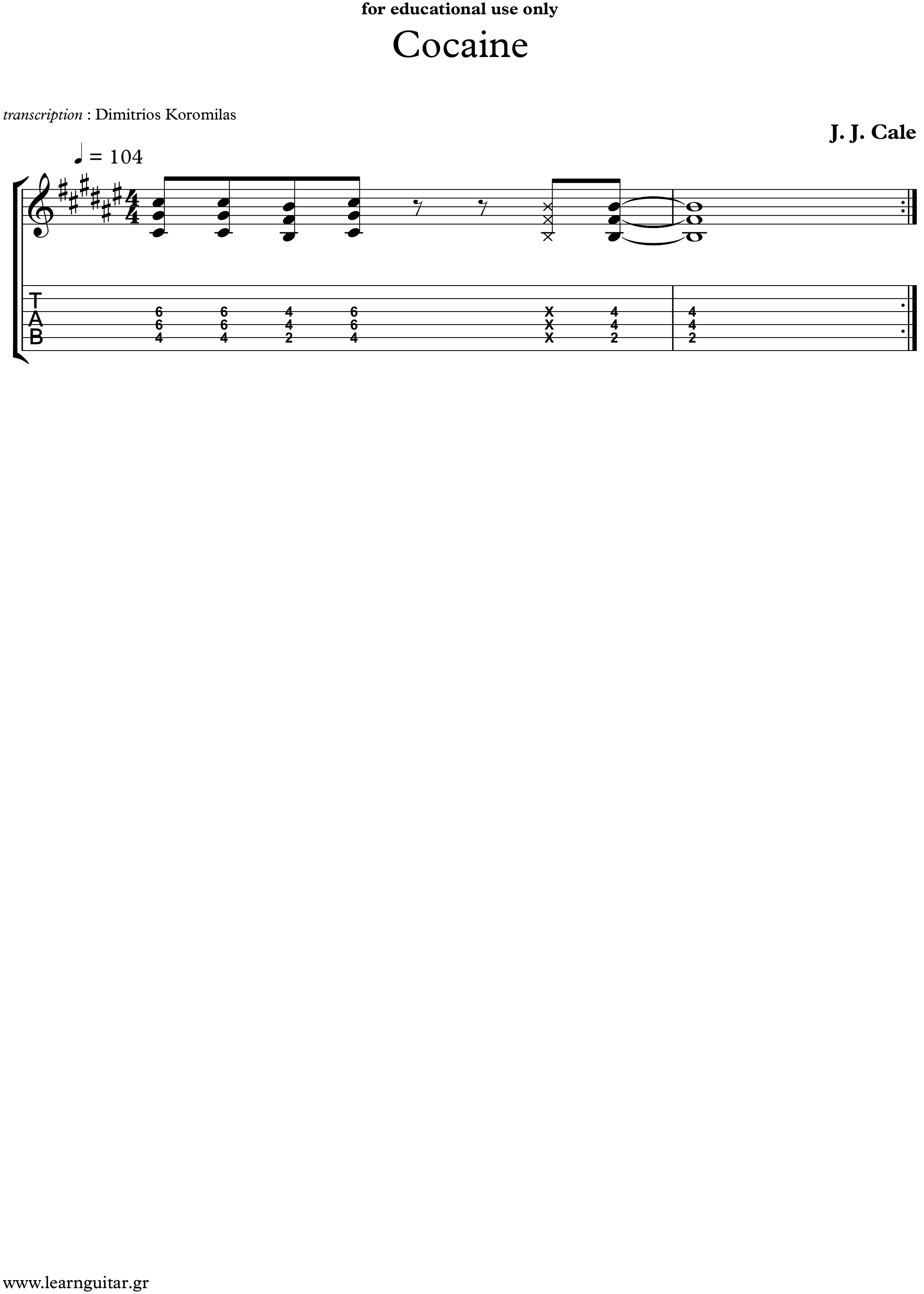 To Cocaine του J.J. Cale ηχογραφήθηκε το 1976 και έγινε ευρύτερα γνωστό από τη διασκευή του Eric Clapton ένα χρόνο αργότερα.