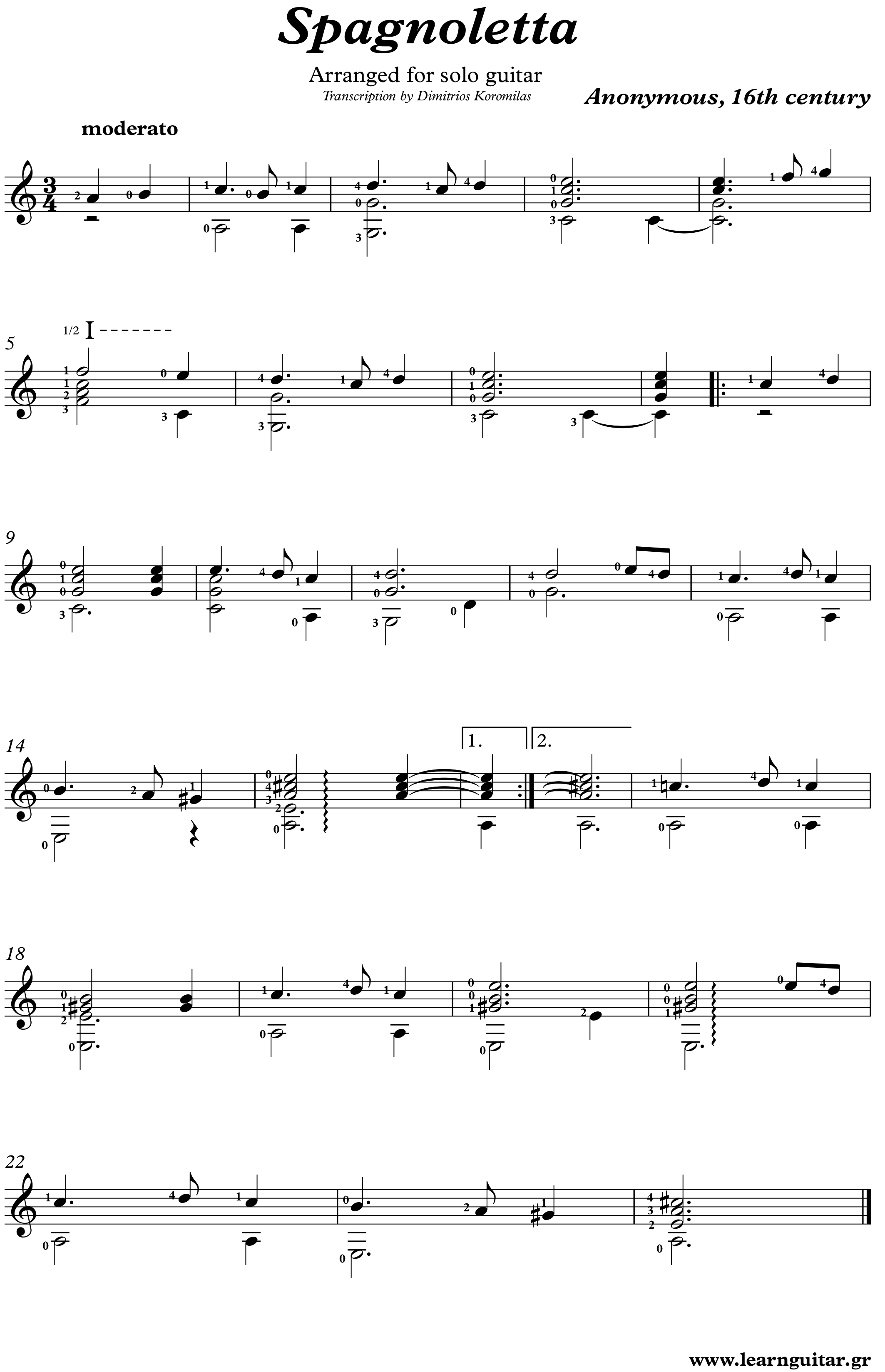 Είναι ανώνυμου συνθέτη. Πρόκειται για μια παραλλαγή του δημοφιλή σκοπού Espanoleta που σημαίνει «σύντομος Ισπανικός σκοπός». Το τέμπο πρέπει να είναι σχετικά γοργό (moderato).