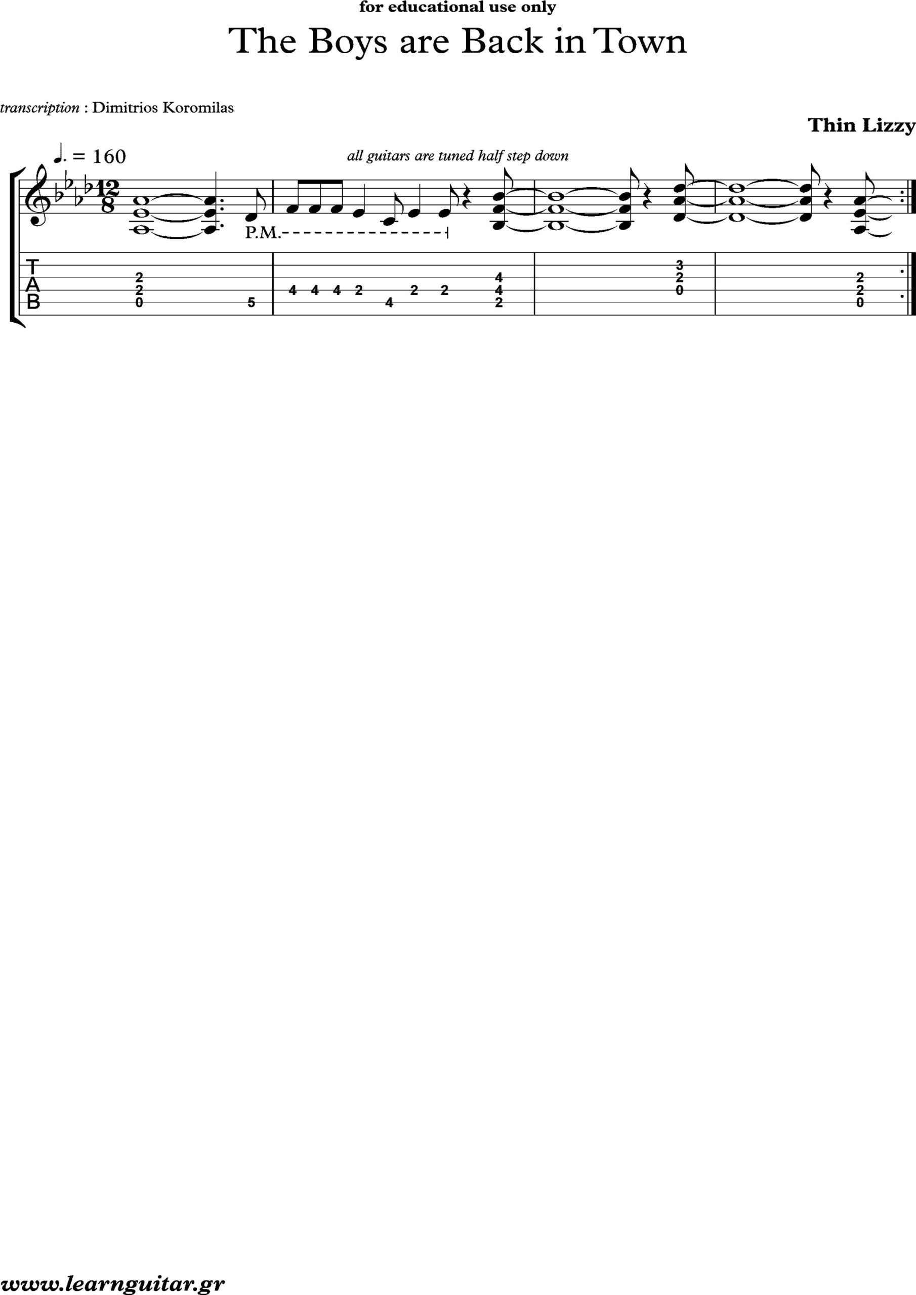The Boys are Back in Town guitar tab : Κατεβάστε το δωρεάν σε pdf μορφή από το παρακάτω link.
