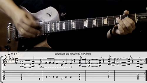 Επίσης στο παρακάτω video μπορείτε να παρακολουθήσετε το riff εκτελεσμένο στην κανονική του αλλά και σε πιο αργή ταχύτητα.
